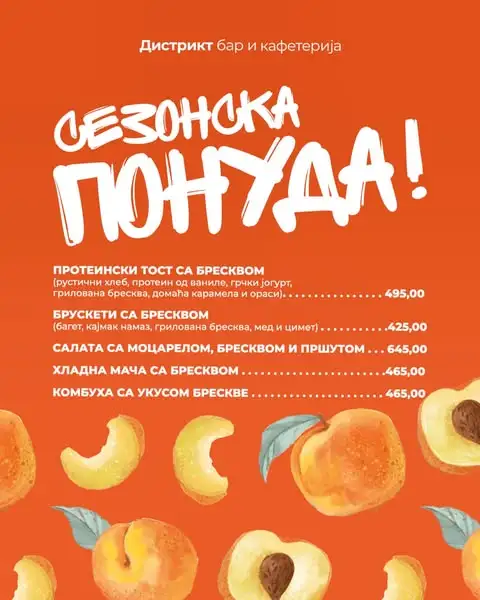 Поносимо се на нашу селекцију пића и јела, припремљених са пажњом и љубављу. Свако искуство у Дистрикту је јединствено, баш као и ви.